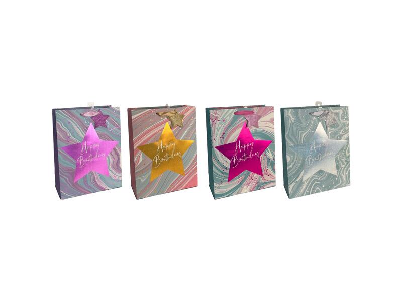 Paper Bag Marble Birthday Star Large Assorted 1 count
