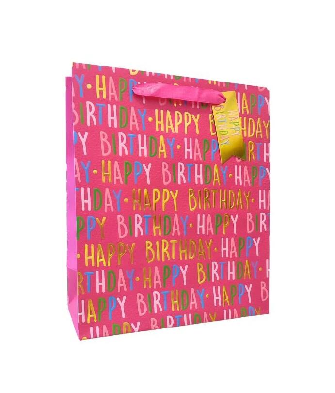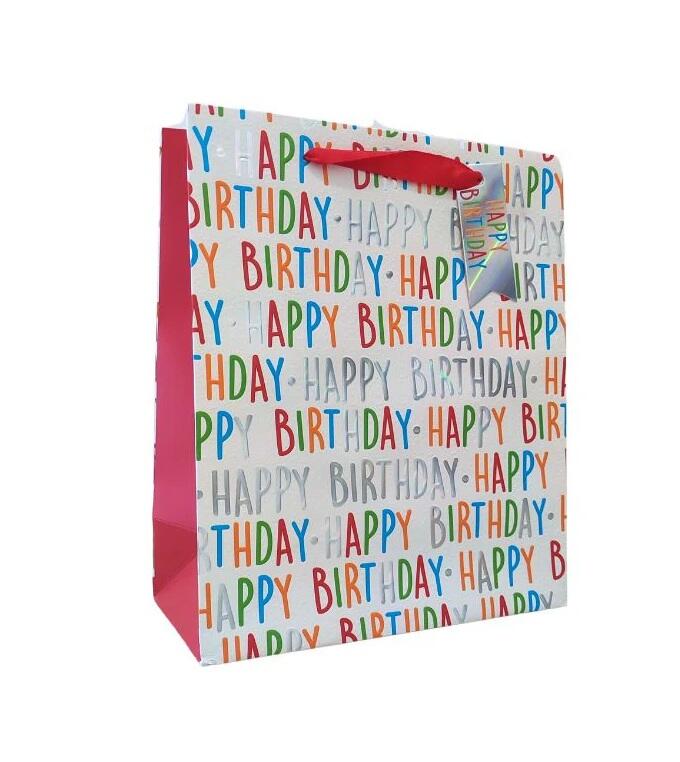Paper Bag Embossed Birthday Medium Assorted 1 count